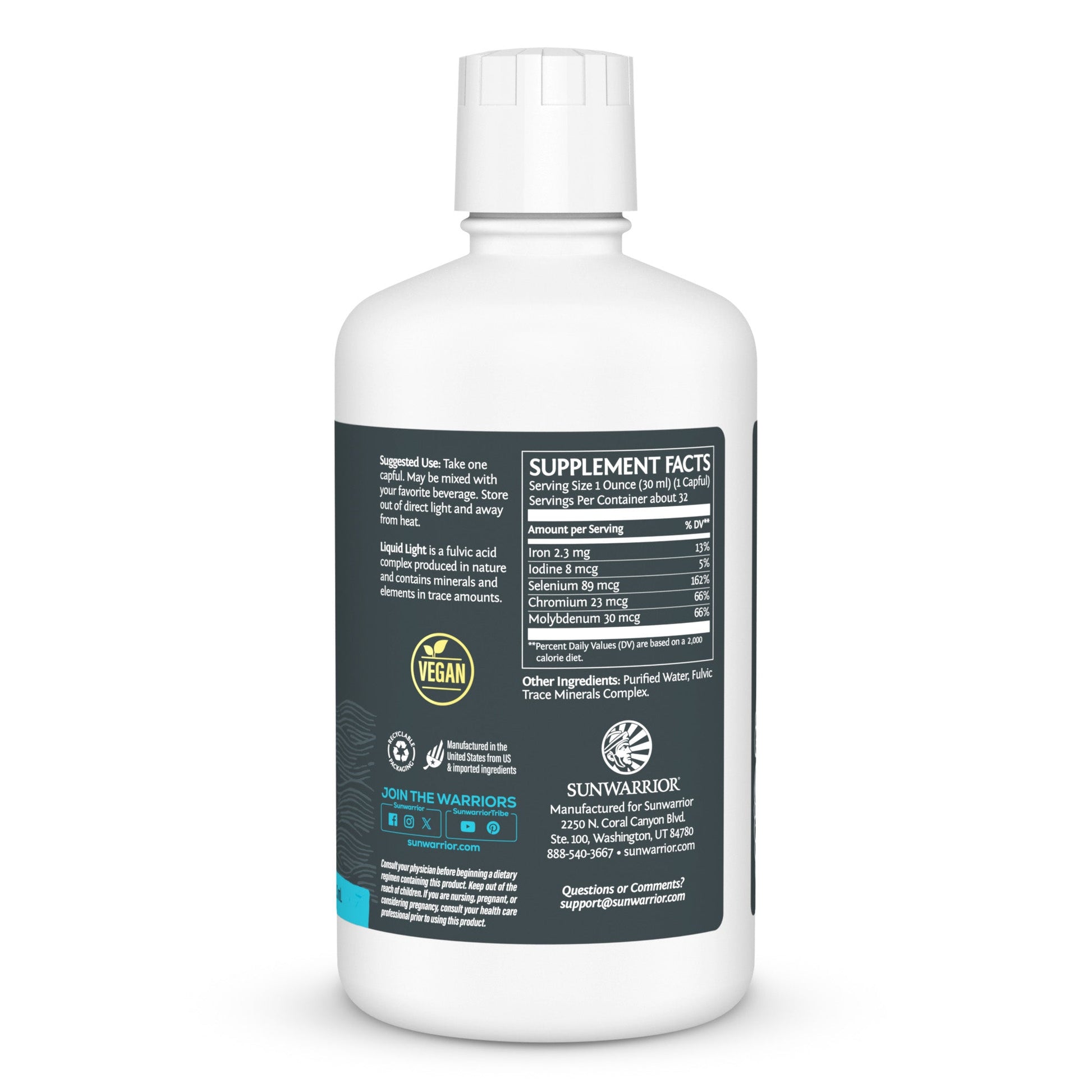 Vegan Folic Acid Complex is expertly crafted with Active Liquid Light, a rich source of trace minerals and Fulvic Acid. This synergistic blend enhances the bioavailability of folic acid, supporting healthy cell growth, energy production, and overall vitality. Liquid Light ensures efficient nutrient absorption, making this complex a powerful addition to your wellness routine.